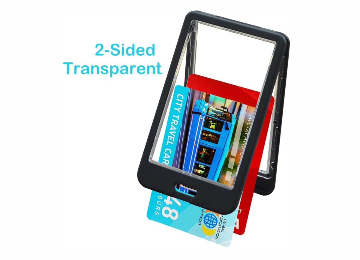 This vertical card protector is made of high-strength plastic frame, lightweight but not easy to break. This badge holder can seal your card to prevent folding, fading, scratching, etc.